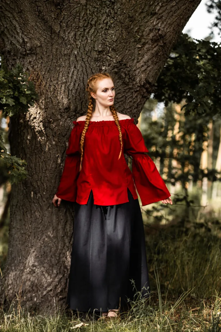 Unsere Bluse Emma ist inspiriert von der Mode des Mittelalters, einer Epoche voller Mythen und Legenden. Kleidung dieser Zeit war oft funktional und elegant zugleich, was sich in den fließenden Silhouetten und den kunstvollen Details widerspiegelt. Historisch gesehen war die Damenmode in dieser Zeit reich an Volumen und Raffinesse, was sich auch im Design der Bluse Emma zeigt.