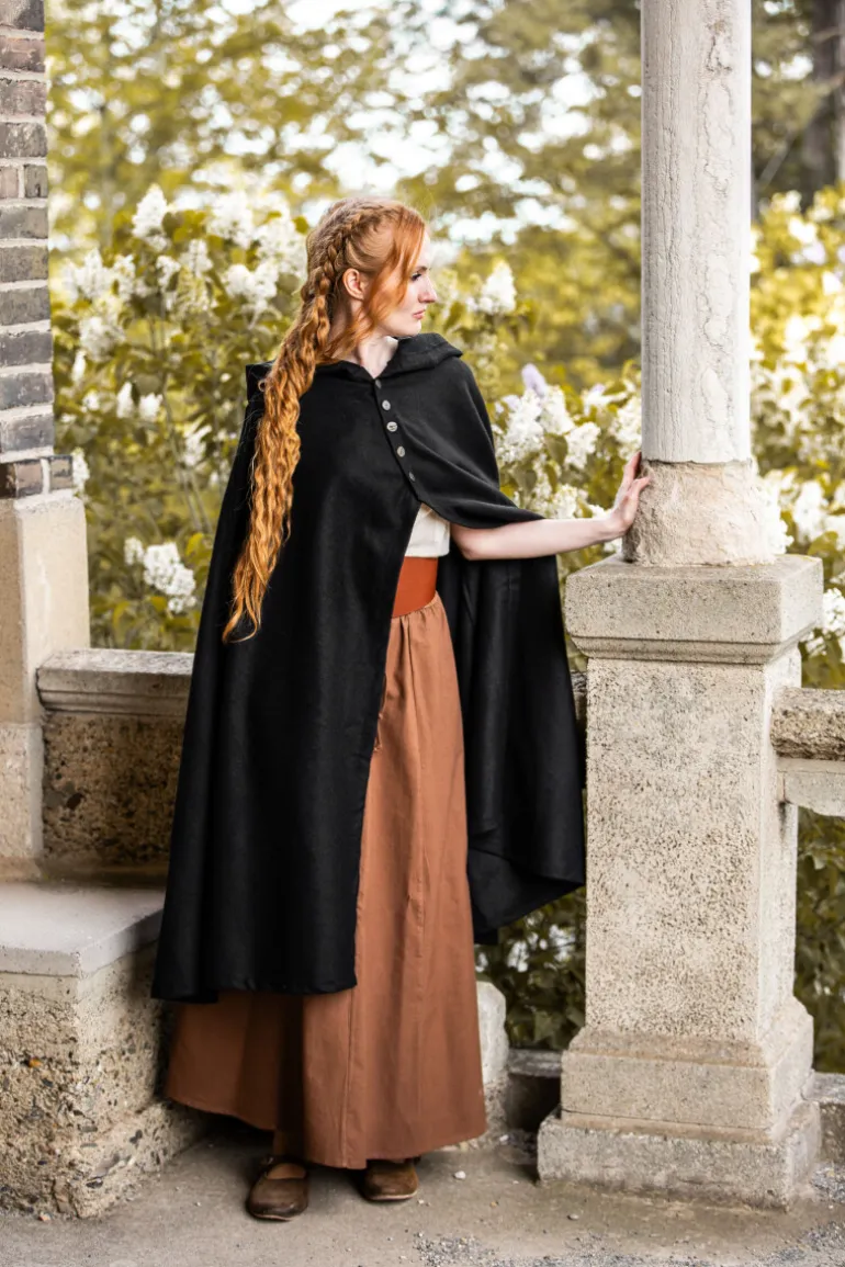 Egal ob Du an einem historischen Festival teilnimmst oder einfach Deinen Alltag mit einem Hauch von Fantasy bereichern möchtest: Unser Damenumhang Heidi ist Dein idealer Begleiter. Die sorgfältig verarbeitete Struktur sorgt dafür, dass er sich harmonisch um Deinen Körper legt und Dir maximale Bewegungsfreiheit gewährt.