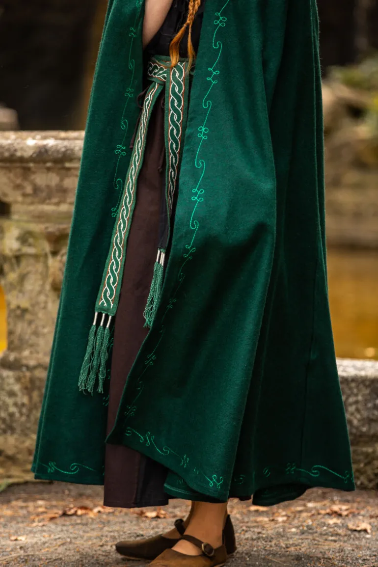 Unser Wikinger Gürtel „Elina“ ist nicht nur ein modisches Accessoire, sondern ein Statement für alle, die sich von der faszinierenden Welt der Wikinger inspirieren lassen. Mit einer Breite von 5 cm und einer großzügigen Gesamtlänge von etwa 235 cm, eignet sich dieser Gürtel ideal, um stilvoll und sicher um Deine Taille gebunden zu werden. Das kunstvolle Muster aus zwei parallel verlaufenden, verschlungenen Linien verleiht dem Gürtel einen Hauch von mystischer Eleganz. Die gefransten Enden unterstreichen den traditionellen Charme und machen ihn zu einem unverzichtbaren Begleiter für Deine nächste Veranstaltung.
