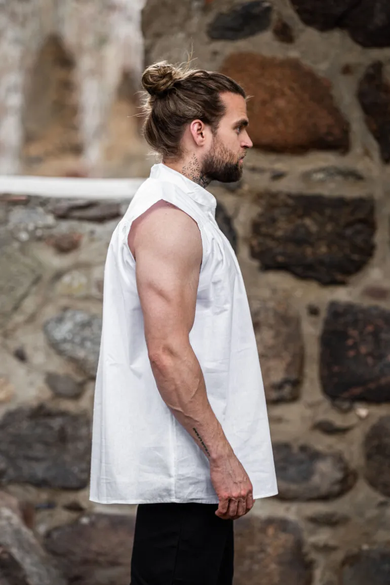 Egal ob Du Dich auf einem Mittelaltermarkt oder einer LARP-Veranstaltung befindest, unser ärmelloses Stehkragen-Schnürhemd Louis lässt Dich in jeder Situation stilvoll erscheinen. Die schlichte Eleganz dieses Kleidungsstücks passt hervorragend zu diversen Anlässen und macht Dich zum Blickfang auf jeder Veranstaltung.